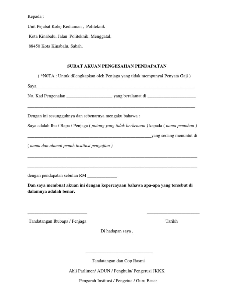 Terkini Surat Pengesahan Pendapatan Ibu Bapa Pdf Surat Akuan Pengesahan Pendapatan Saya Course Hero
