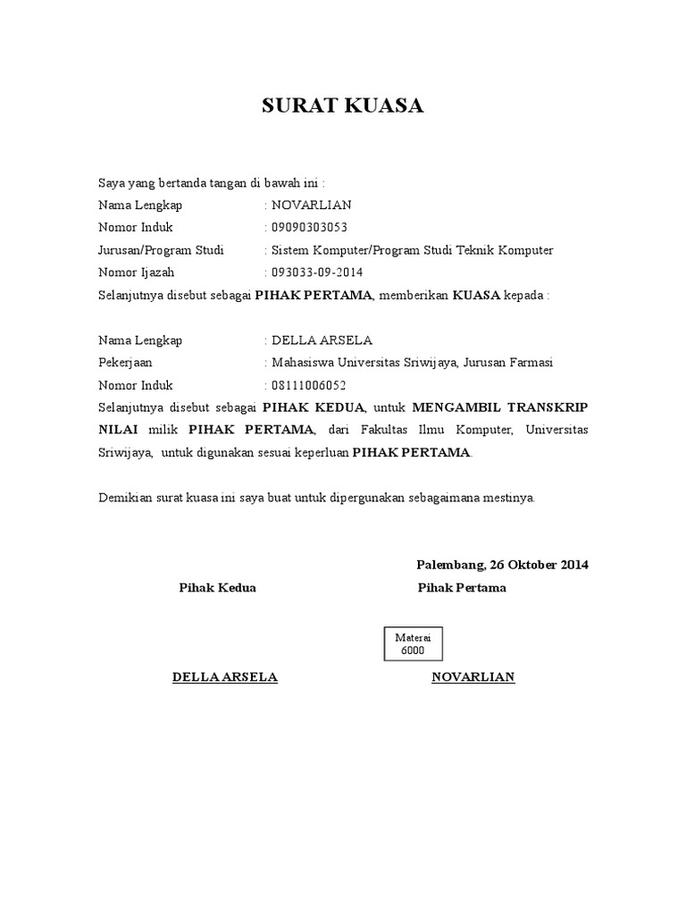 15 Contoh Surat Kuasa Dengan Penulisan Yang Baik Dan Benar Lengkap Balubu