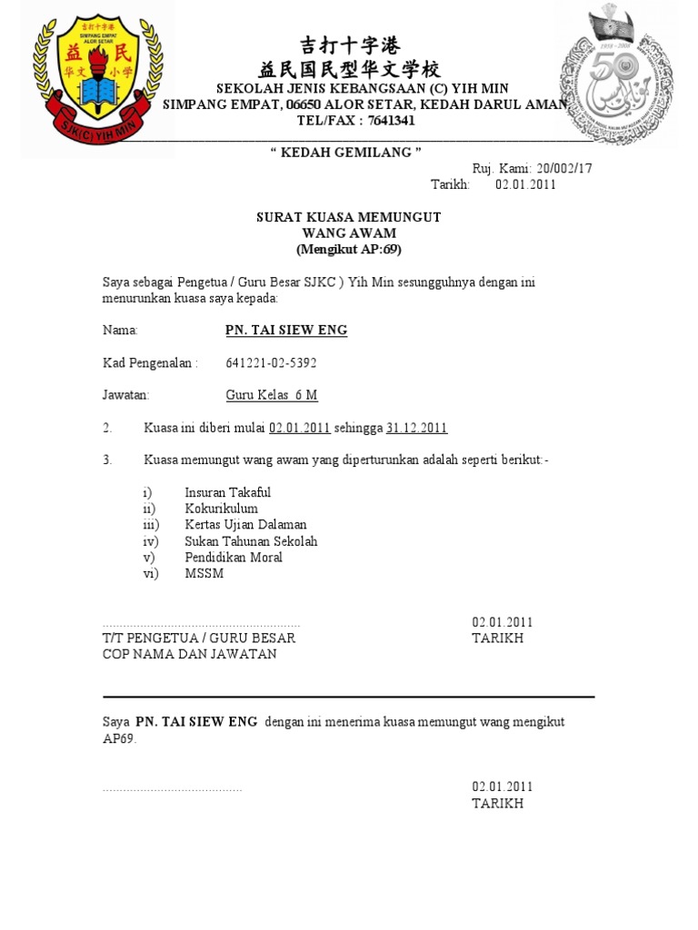 Contoh Surat Penurunan Kuasa Kewangan Sekolah Backup Gambar