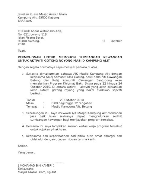 Contoh Surat Rasmi Sokongan Ketua Kampung Info Melayu