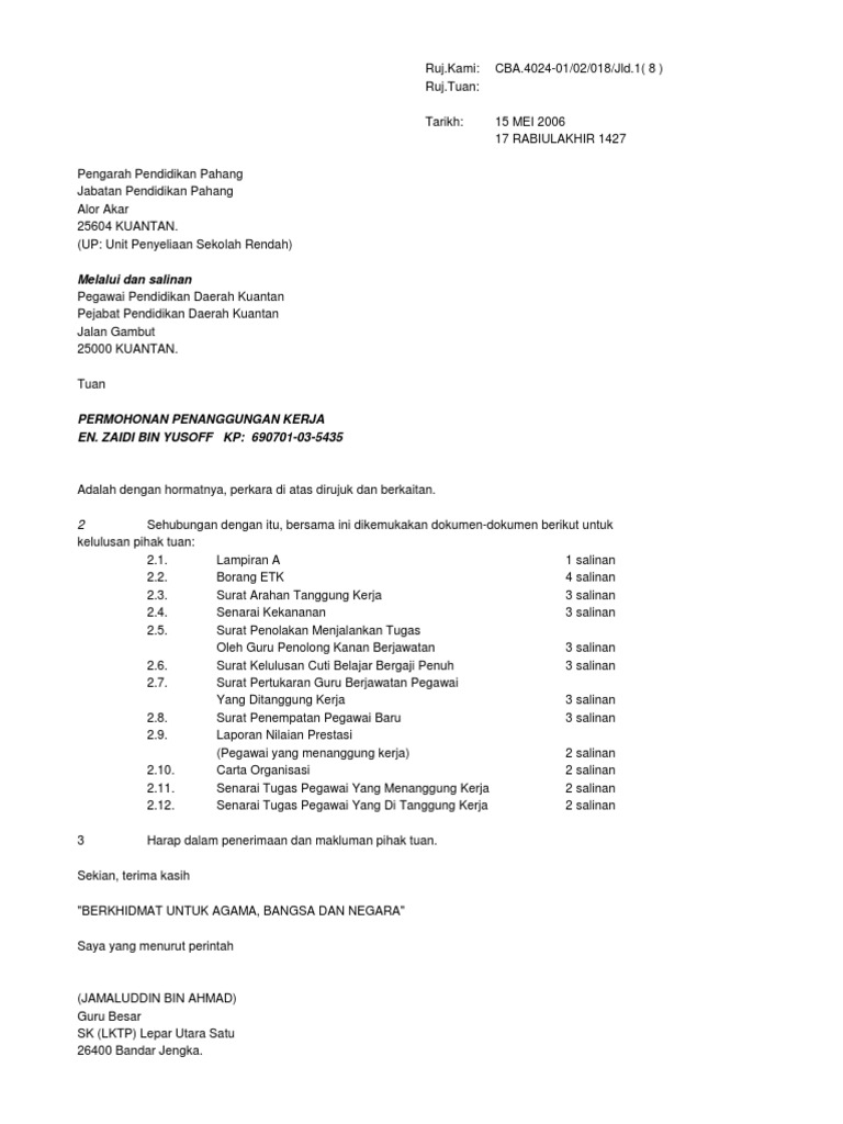 Contoh Surat Tunjuk Sebab Mudah Dan Ringkas Jawatan Kosong