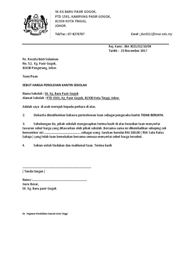 Surat Rasmi Permohonan Tender Kantin Rasmi O