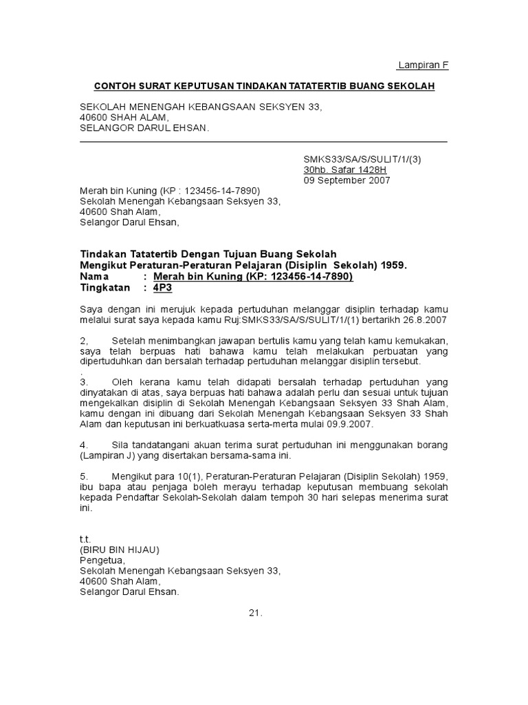 Contoh Surat Tindakan Tatatertib