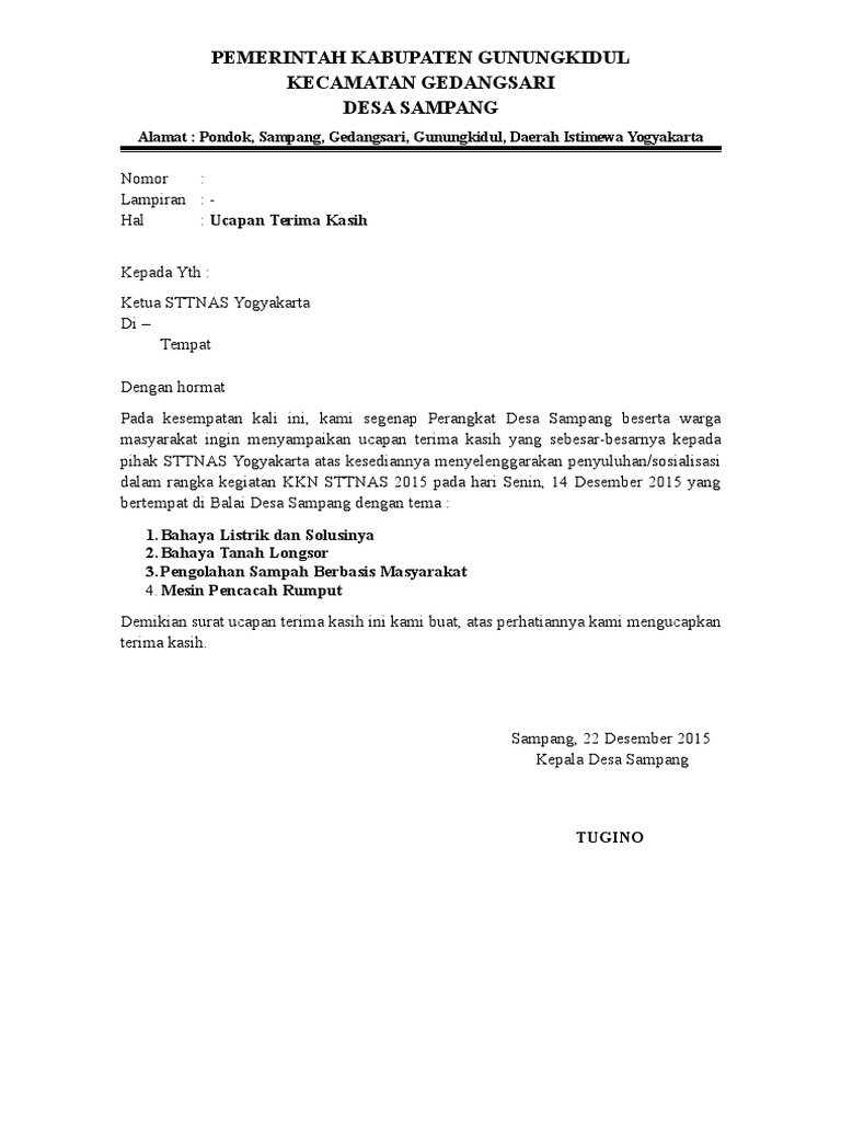 Contoh Surat Ucapan Terima Kasih Yang Benar