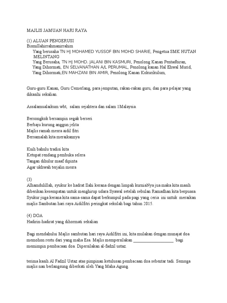 Contoh Teks Pengacara Majlis Bahasa Arab