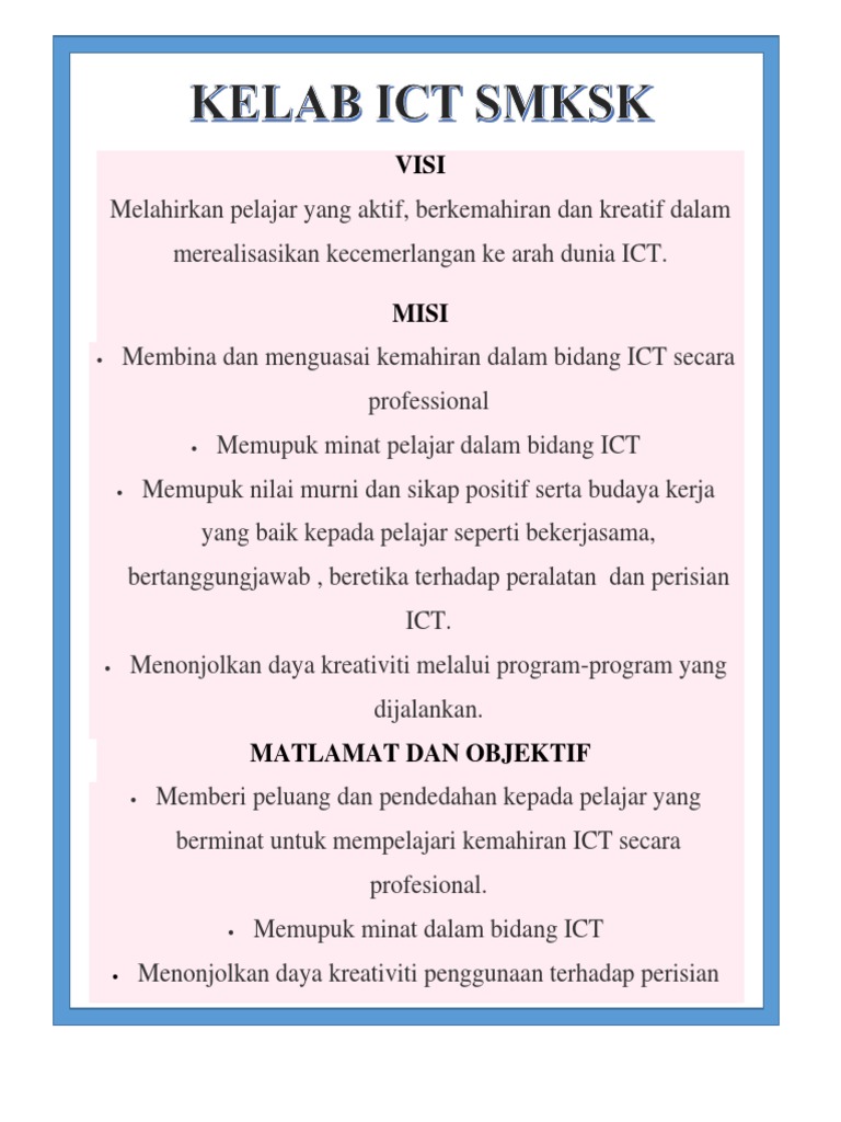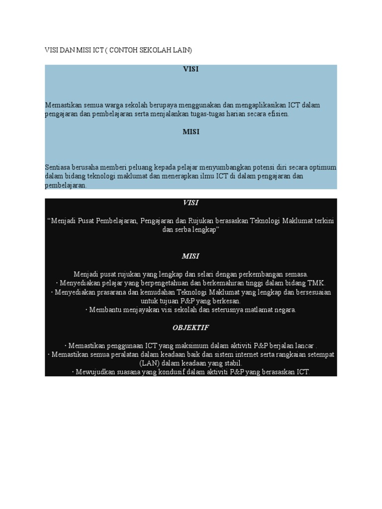 Visi Dan Misi Ict Sekolah Lain