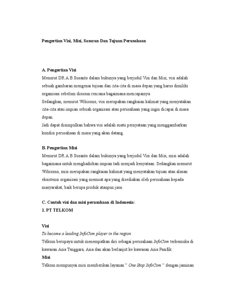 Contoh Visi Misi Tujuan Dan Sasaran Perusahaan