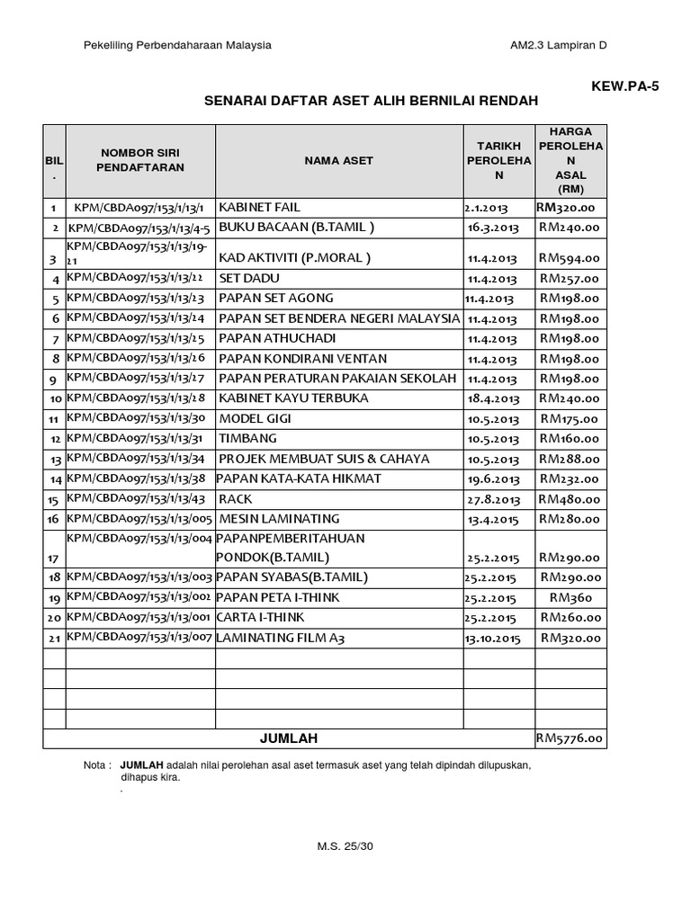 Kew Pa 3 Daftar Aset Alih Yang Bernilai Rendah Jlk9x1gxx545