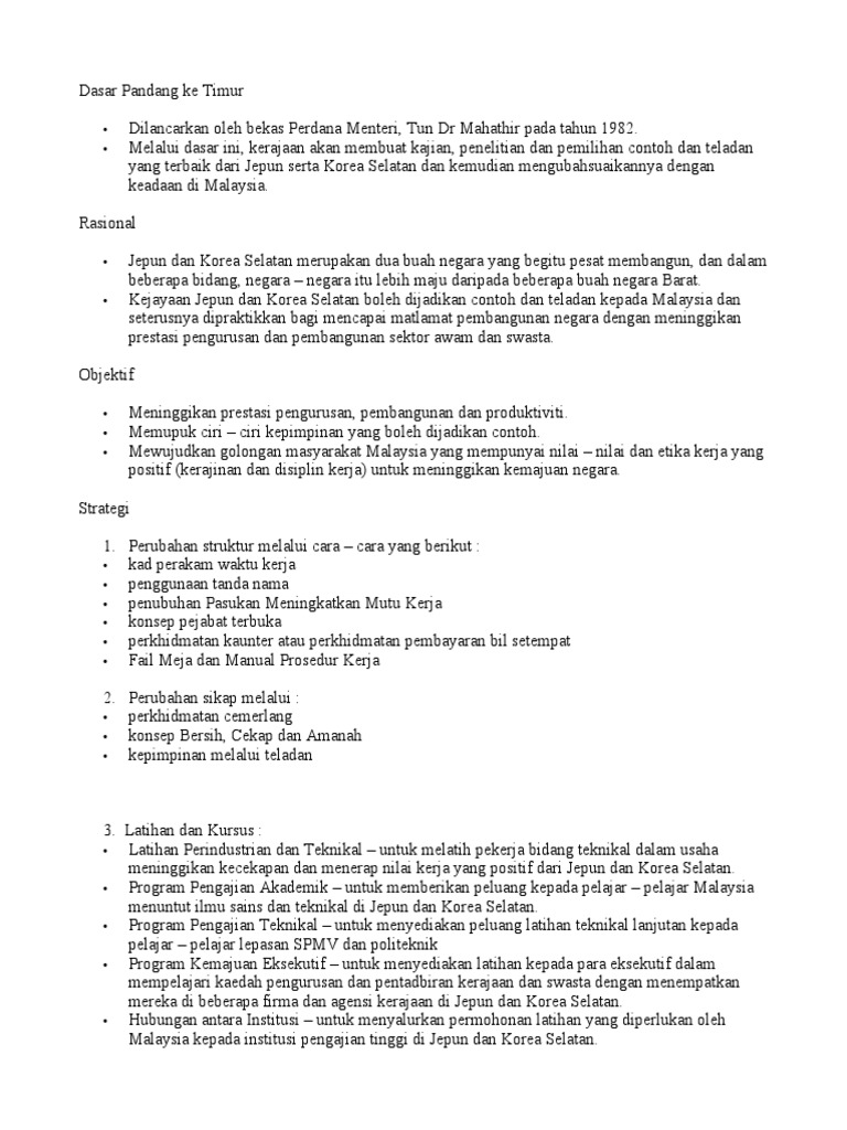 Pengajian Am Dasar Pandang Ke Timur Cekap Bersih Dan Amanah Dan Kepimpinan Melalui Teladan