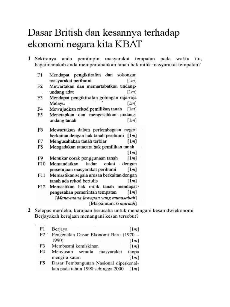 Dasar British Terhadap Ekonomi Negara Dan Kesannya Kertas 3 Pdf Free Download