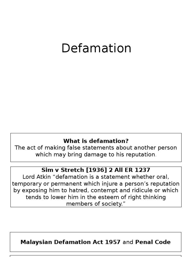 11 Defamation Ppt Defamation Definition Of Defamation No Proper Definition As It Is Not Defined In The Malaysian Defamation Act 1957 Definition Kho Course Hero