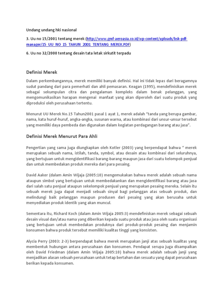 Definisi Merek Undang Undang Hki Nasional 3 Uu No 15 2001 Tentang Merek