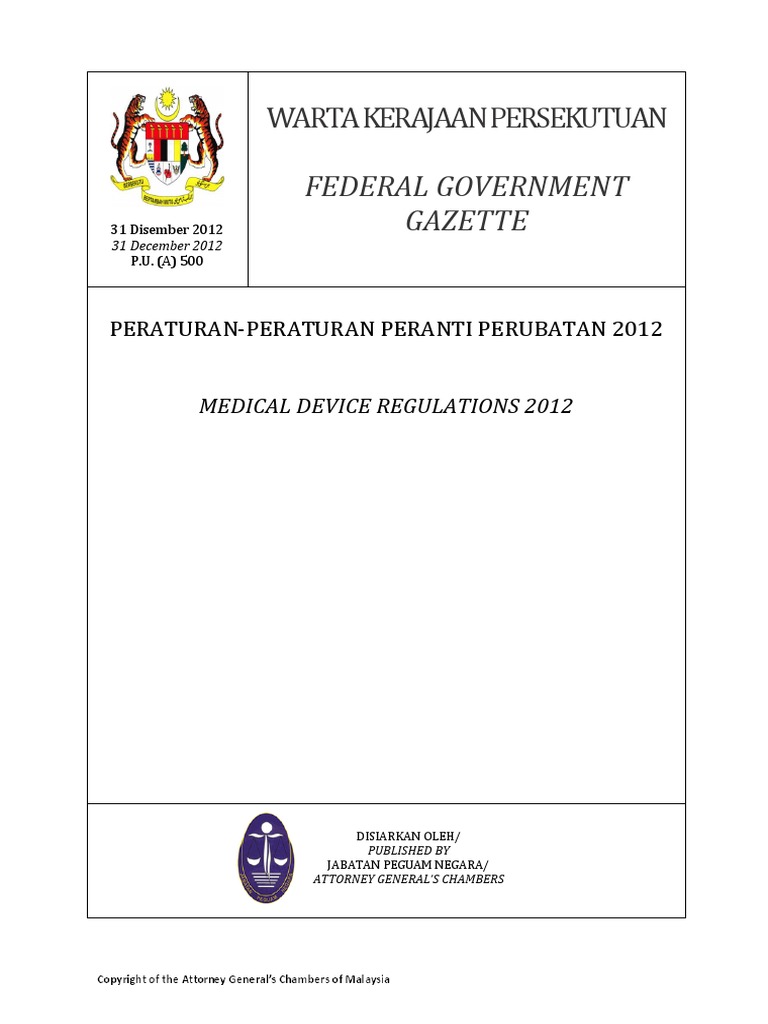Peraturan Peranti Perubatan 20121231 P U A 500 Pdf