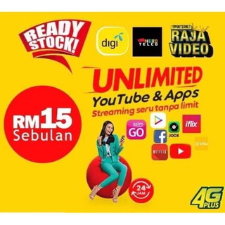 Prepaid Raja Video Unlimited Youtube Rm15 Monthly 2gb Data All Usage Included Shopee Malaysia