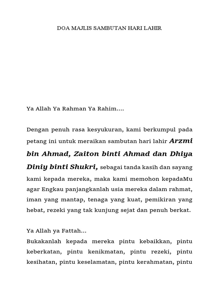 Doa Majlis Sambutan Hari Lahir Docx
