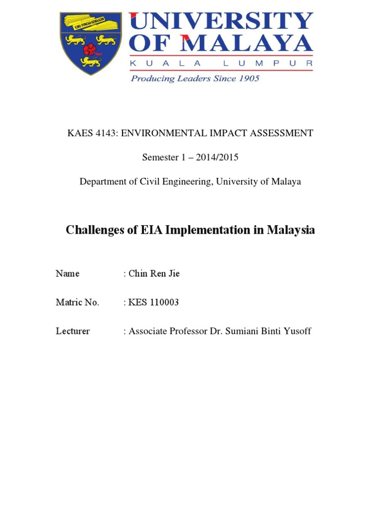 Pdf Improving Environmental Impact Assessment Eia Process In Malaysia