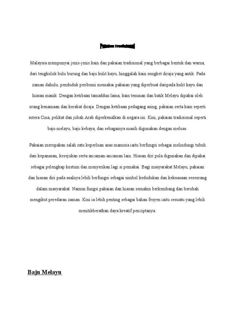 Pakaian Tradisional Di Malaysia Pengenalan