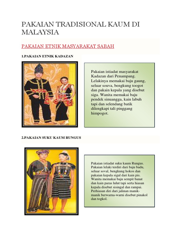 Folio Pakaian Tradisional Kaum Kaum Di Malaysia