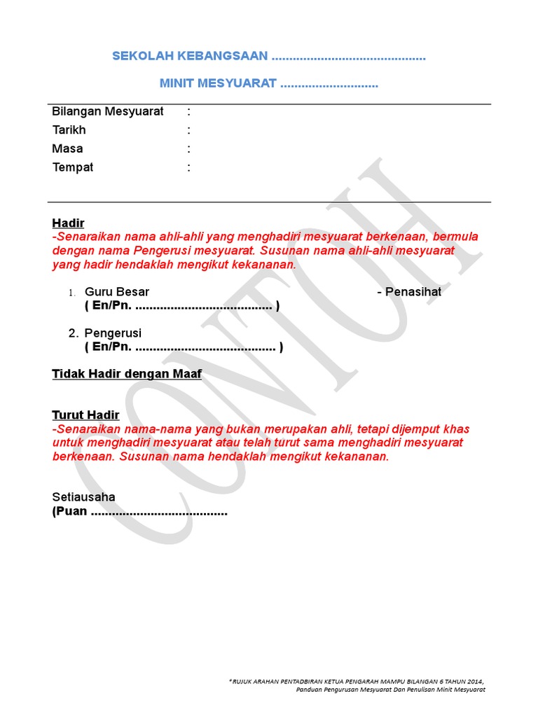 Doc Contoh Format Minit Mesyuarat Wawa Wawa Academia Edu