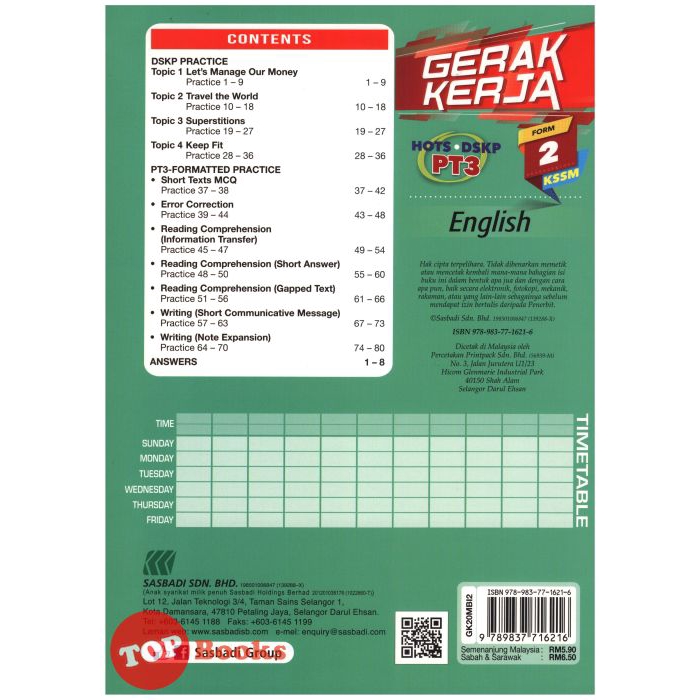 Edisi 2020 Gerak Kerja Kssm Pt3 English Form 2 Topbooks Plt