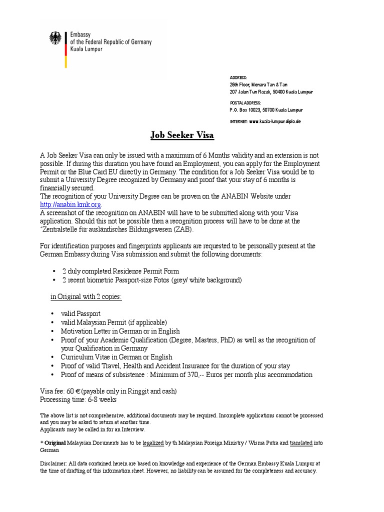 German Embassy Kuala Lumpur Student Visa