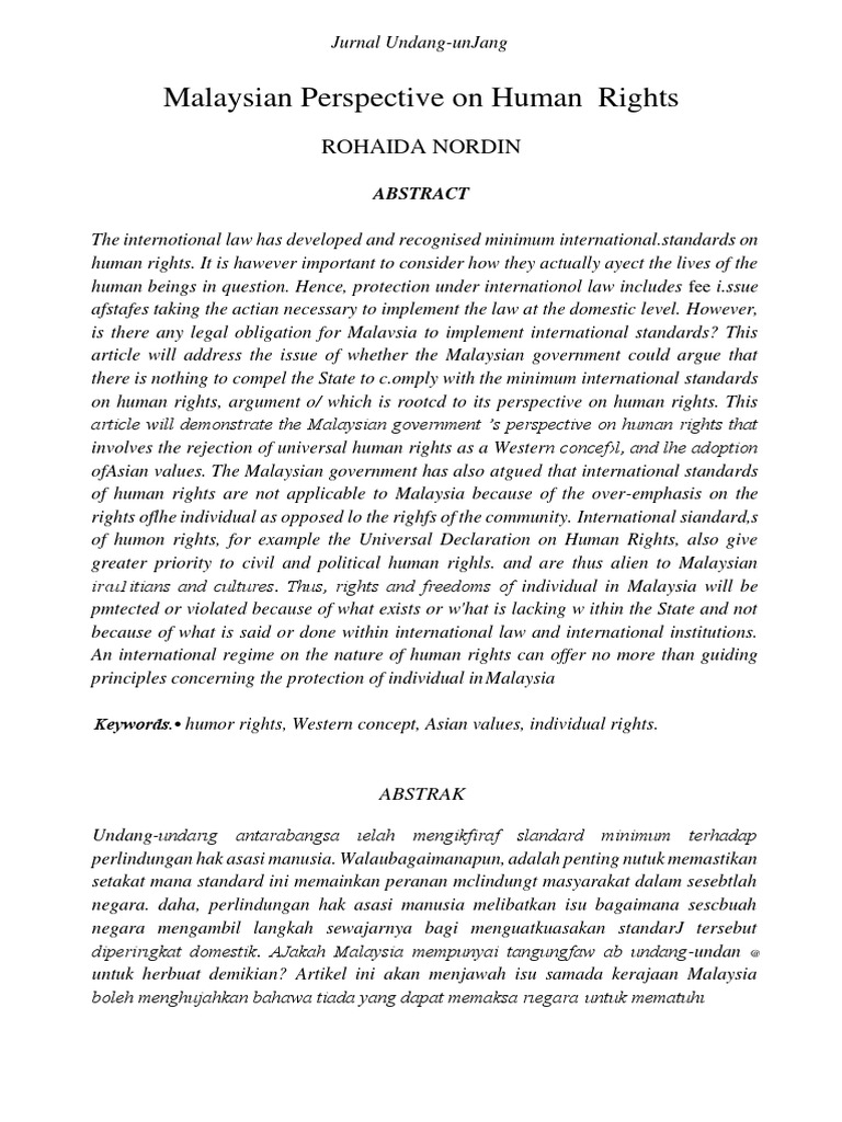 Pdf Malaysian Perspective On Human Rights Rohaida Nordin