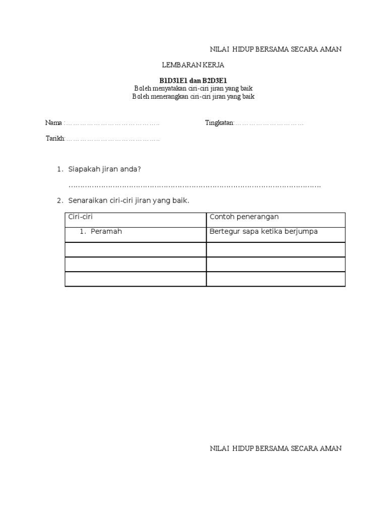 Pendidikan Moral Contoh Nilai Hidup Bersama Secara Aman