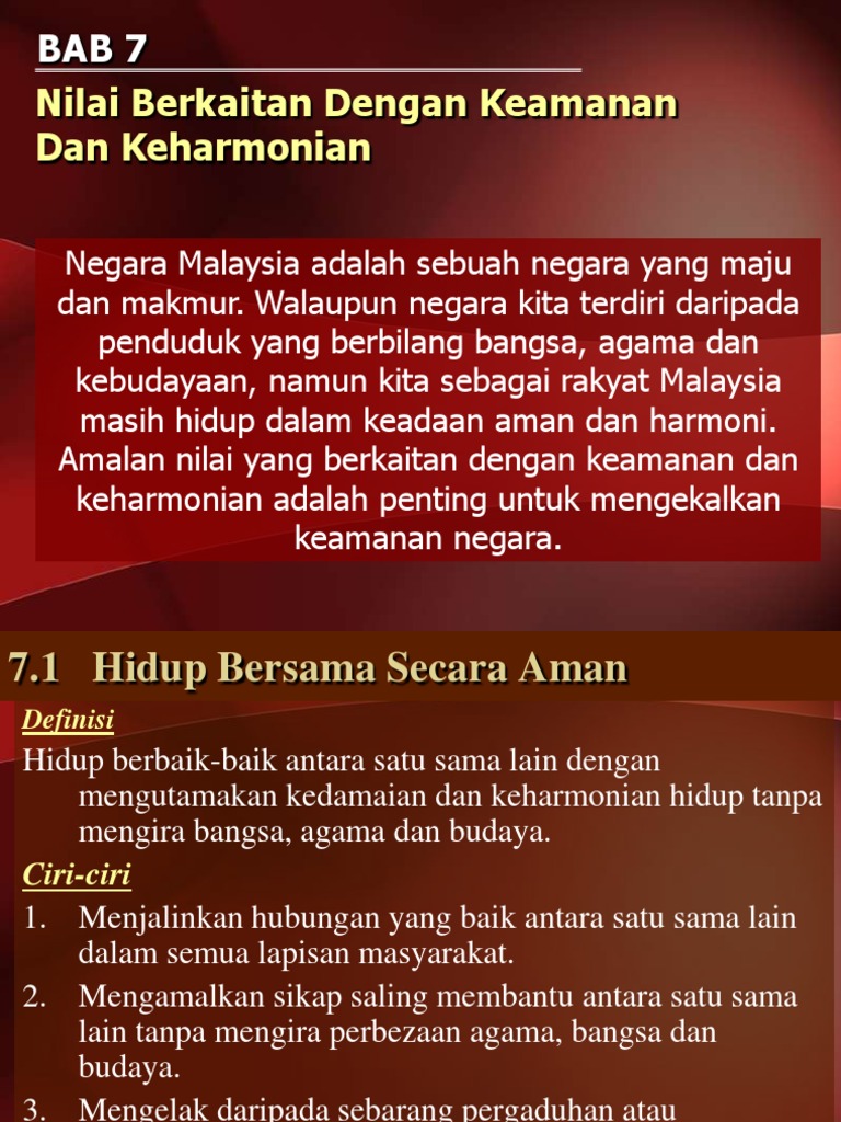 Bidang 7 Nilai Berkaitan Dengan Keamanan Dan Keharmonian