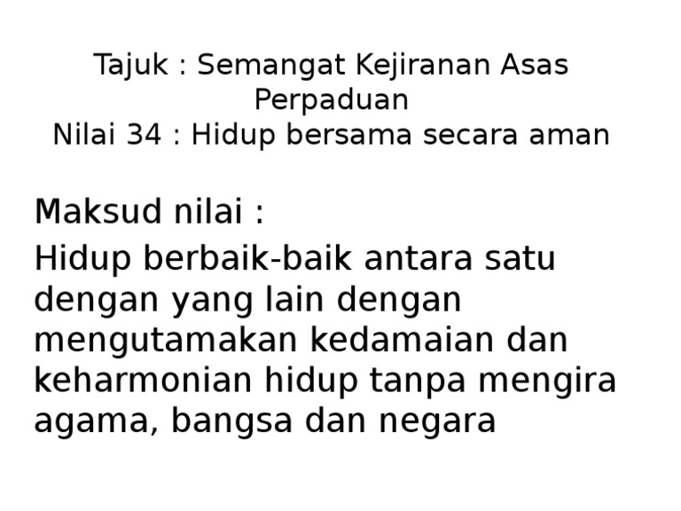 Malaysia Yang Bersatu Nilai Hidup Bersama Secara Aman