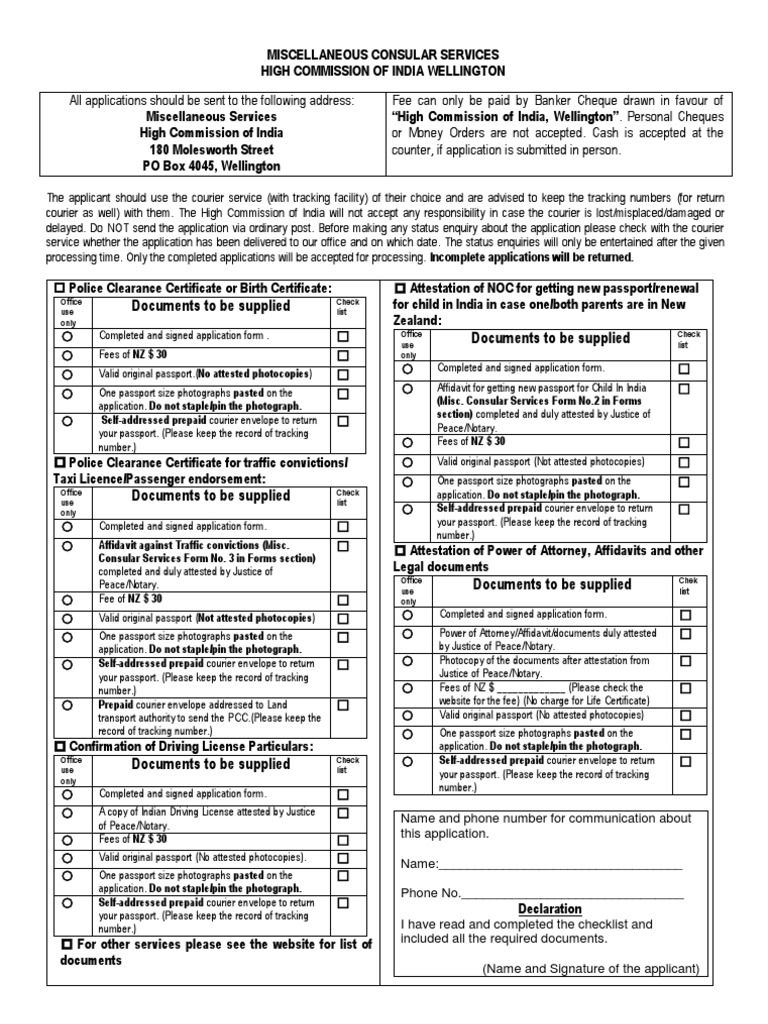 Ranchhod tower level 2 102 112 lambton quay level 1 133 onehunga mall wellington 6011 po box 4045. It is generally required when a person applies for a visa permanent residency. For visa passport oci pio pcc idlv consular service application enquiries from sa nsw nt qld act wa vic tas contact vfs global an outsourced partner to the high commission of india consulate general of india in australia vfs working hours. Police clearance certificate for foreign passport holders police clearance certificate pcc is issued by the high commission certifying the person s criminal record during his her stay in india.
