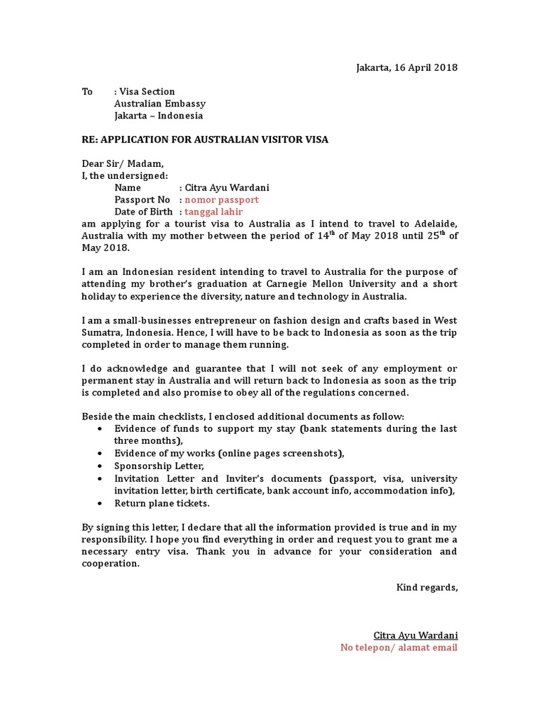 Re Application For Australian Visitor Visa Nomor Passport Tanggal Lahir