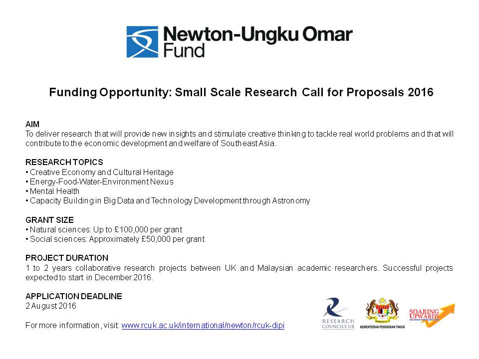 Uk In Malaysia On Twitter Newtonungkuomarfund Small Scale Research Call For Proposals Now Open Details Https T Co Gfh433bwod Newtonfund